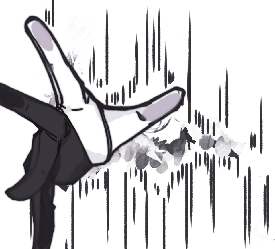 彼女の制服は逆さまの百合の花のように、虚空の中で開いている。